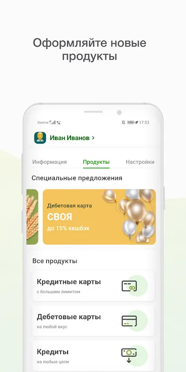 С помощью удобного меню мобильного приложения Россельхозбанка вы сможете совершать любые операции с личными счетами. Хотите получить займ, отправить деньги другому клиенту или заказать новую карту? Теперь всё это доступно в несколько кликов прямо с вашего смартфона.